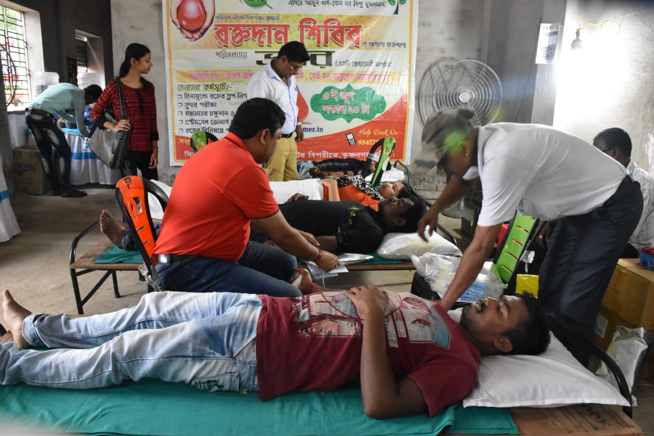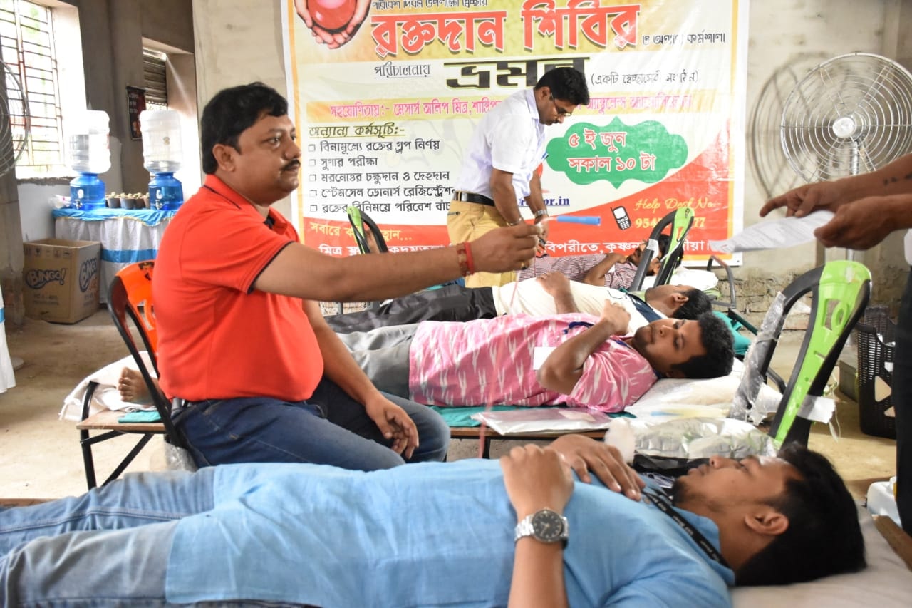 Save the environment in exchange for blood. Bhromor organized blood donation camp under this slogan. There is after death eye donor registration, after death body donor registration,free sugar test,free blood test,one tree for each donor, tiffin for them, stem cell donor registration. Many thanks to Messors Olip Mitra (Debabrata Da). Thanks to Shantipur Marami and St. John Ambulance Association for their medical support.