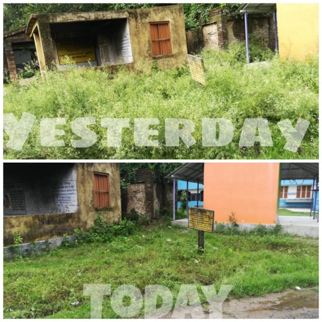 The campaign to release Parthenium in front of Patua Primary School started this morning at the initiative of Badakulla Bhromorians.