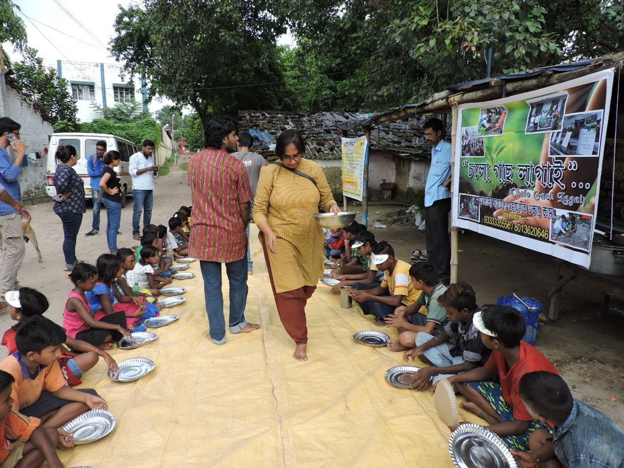 On Sunday, September 1, about 100 saplings were planted in Barrackpore town. Some trees are planted by children and some by members. In addition, some cuttings have been planted so that the seedlings can grow in a few months. In addition, about 30 more trees were planted along the banks of the river to control the erosion of the river. Because the people of Barrackpore know that a large part of the river Ganges is being eroded in this part of U-24 Parganas. They also have a morning tiffin and lunch. Rice, pulses,chips, meat and sweets. This program has been completed with the initiative of Cholo Gach Lagay and Bhromor. And next to us stands the Barrackpore Retreat Club (which is part of the Rotary Club).