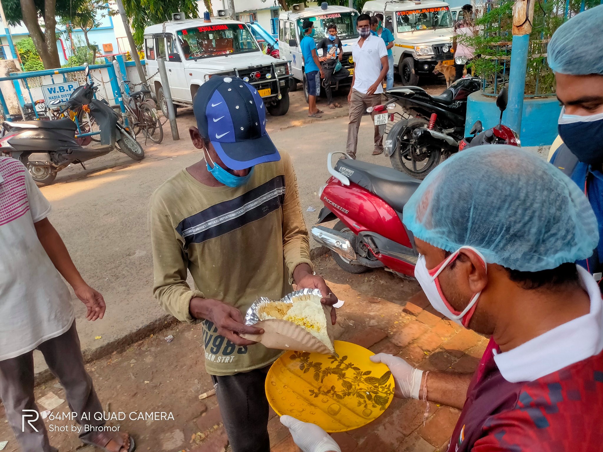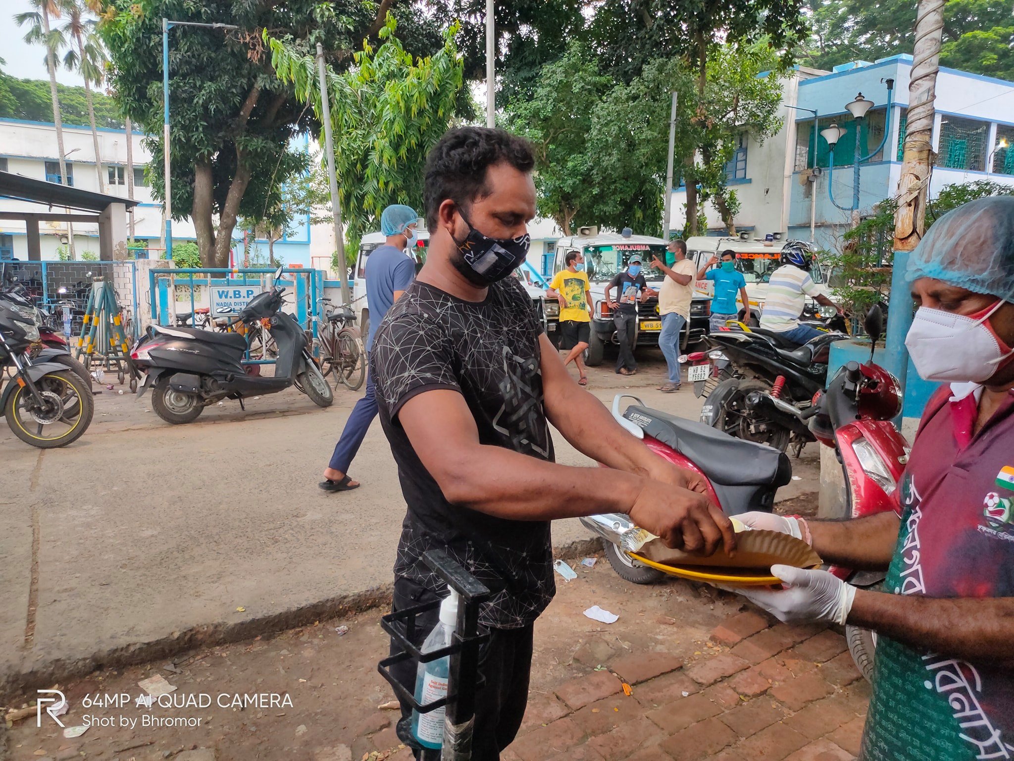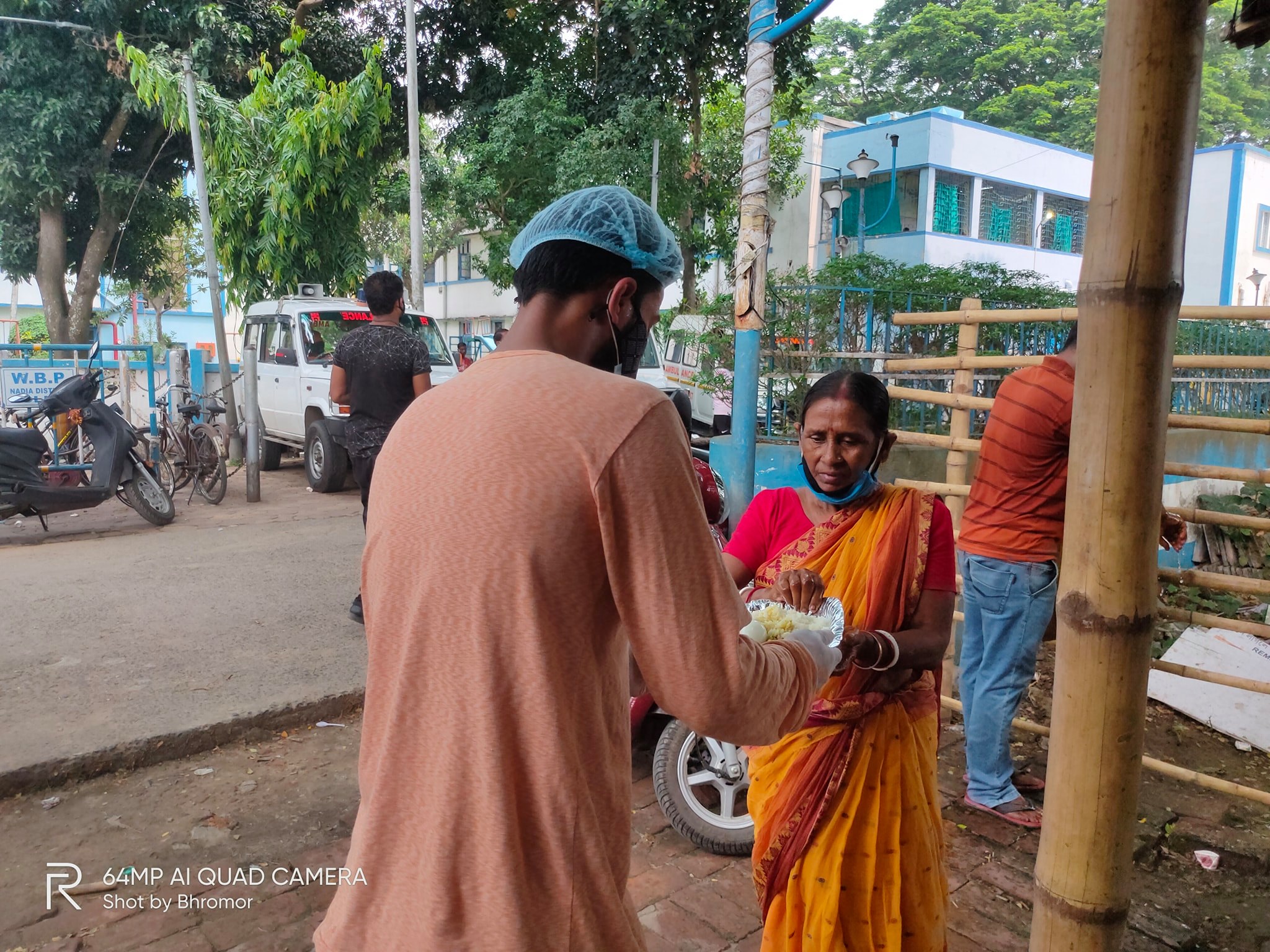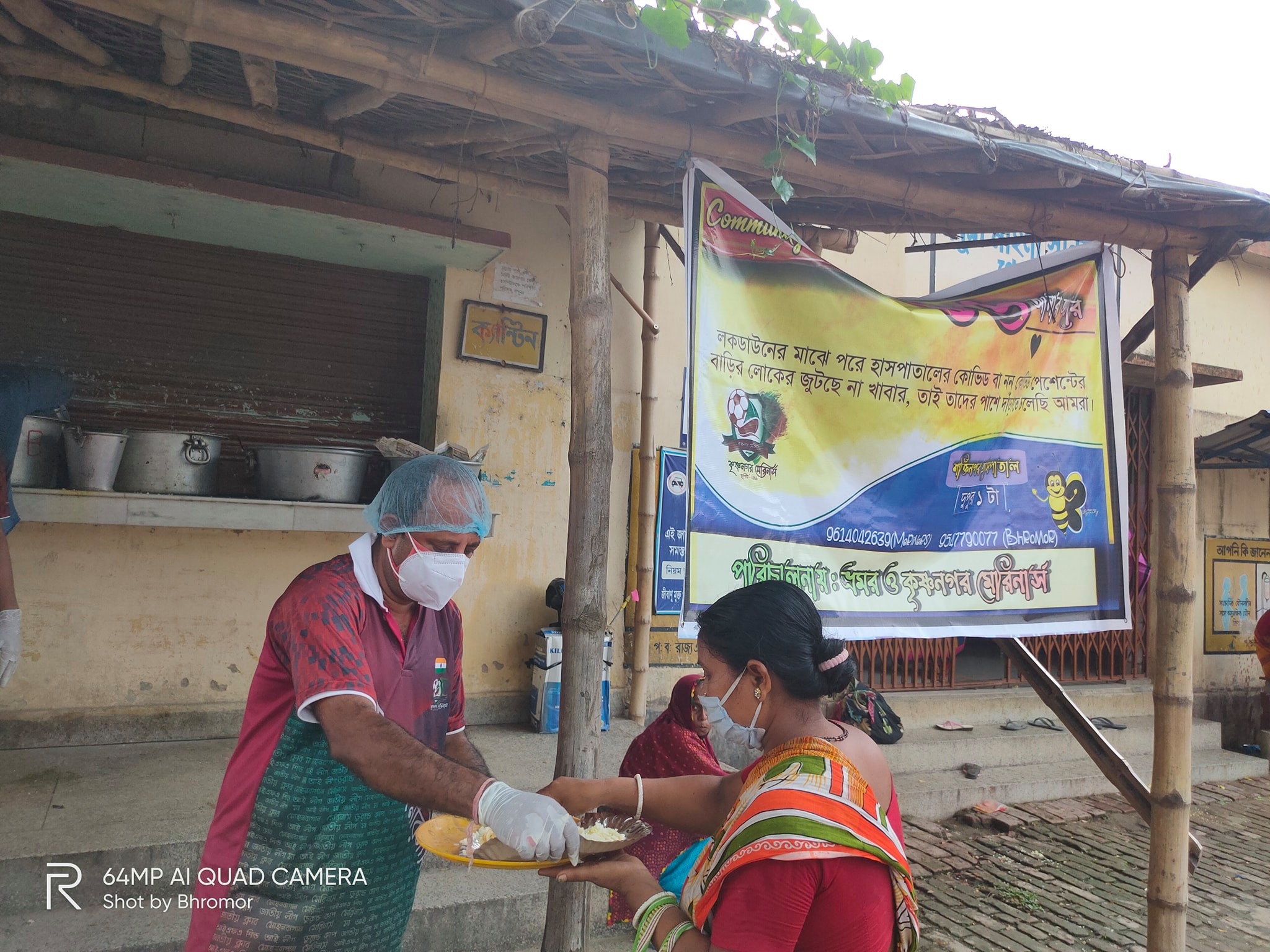 All hotels and restaurants closed due to lockdown. So Bhromor and Krishnanagar Mariners have jointly started the Community KItchen to be by the side of the family members of Covid and non-Covid patients admitted to Shaktinagar District Hospital and to provide them with food. This canteen is running on a daily basis. This community kitchen is giving away free food to 120 people every day.