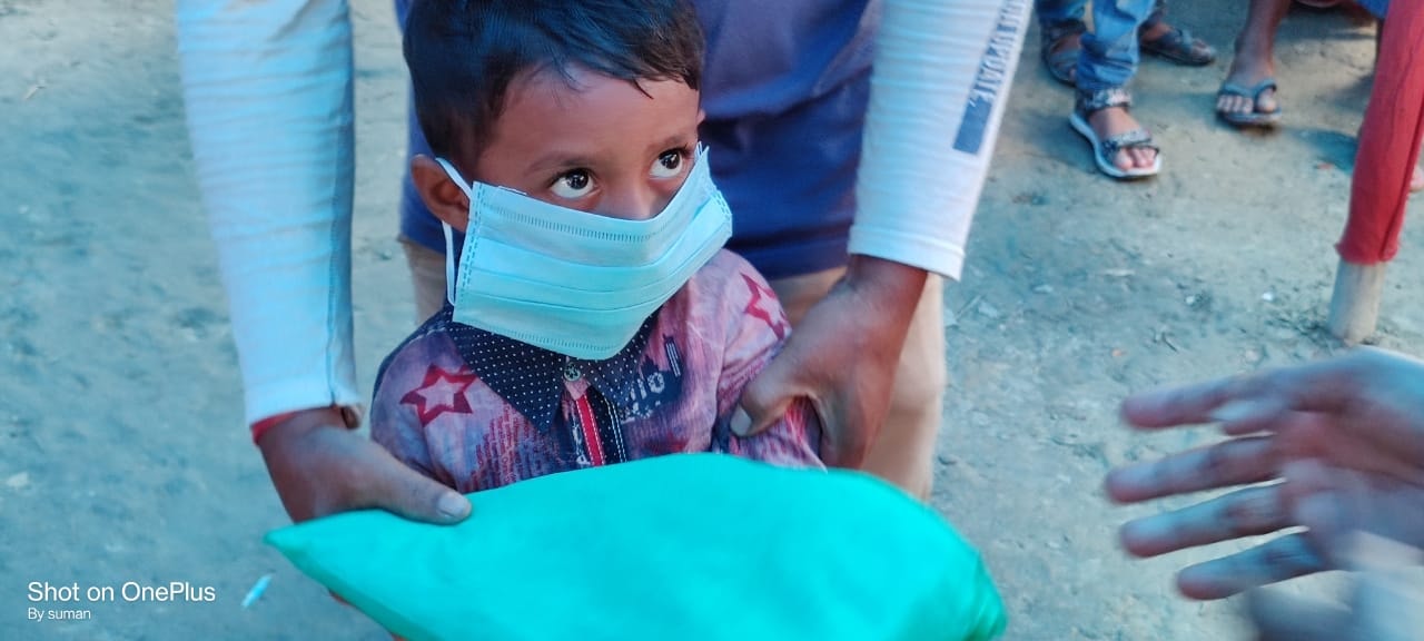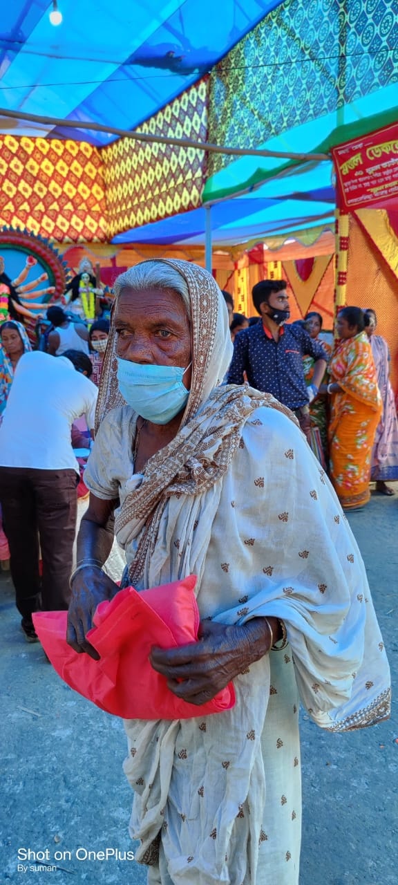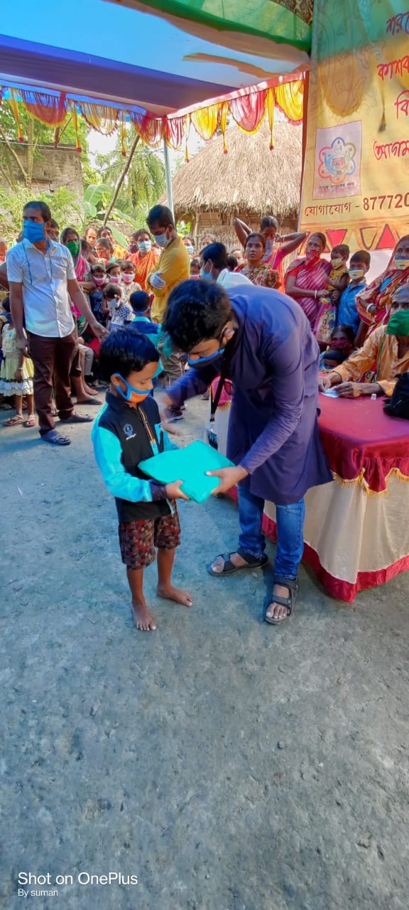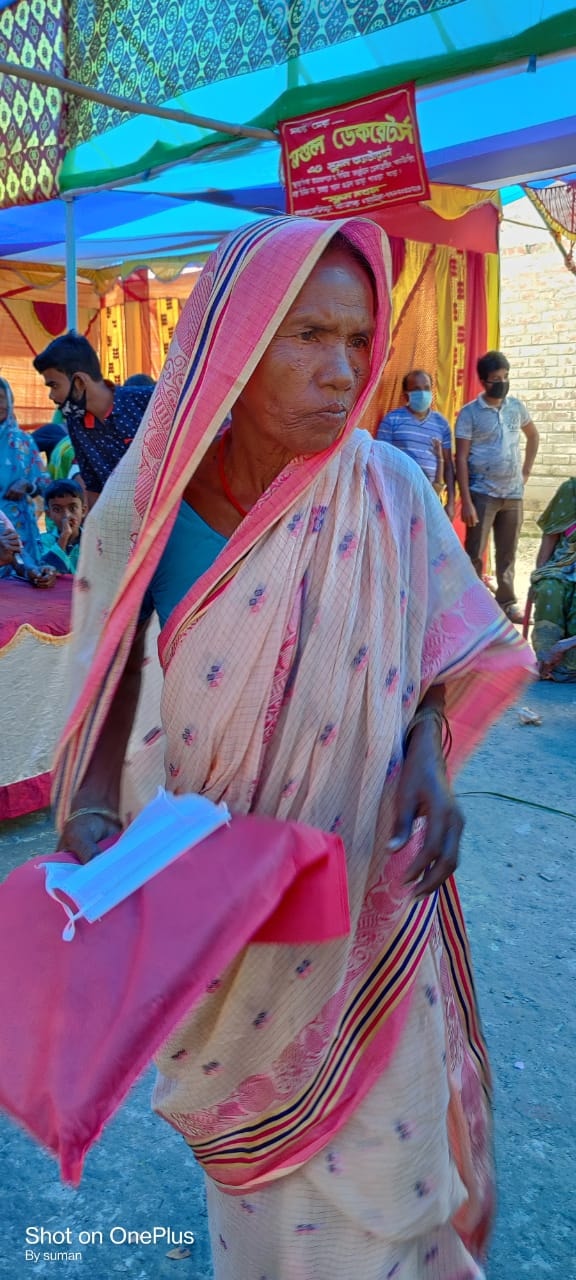 Satjelia is a village in Sundorbon. That place is very inaccessible. Bhromor crossed two small and big rivers and reached there on 21st October, just before Durgapujo. The day was Panchami. The children were given new clothes, mothers got new saris, sanitary pads, masks with various foods. They are very happy to get the things. We was surprised to see this joy.We was inspired. Many thanks to the Million Smile Foundation.
