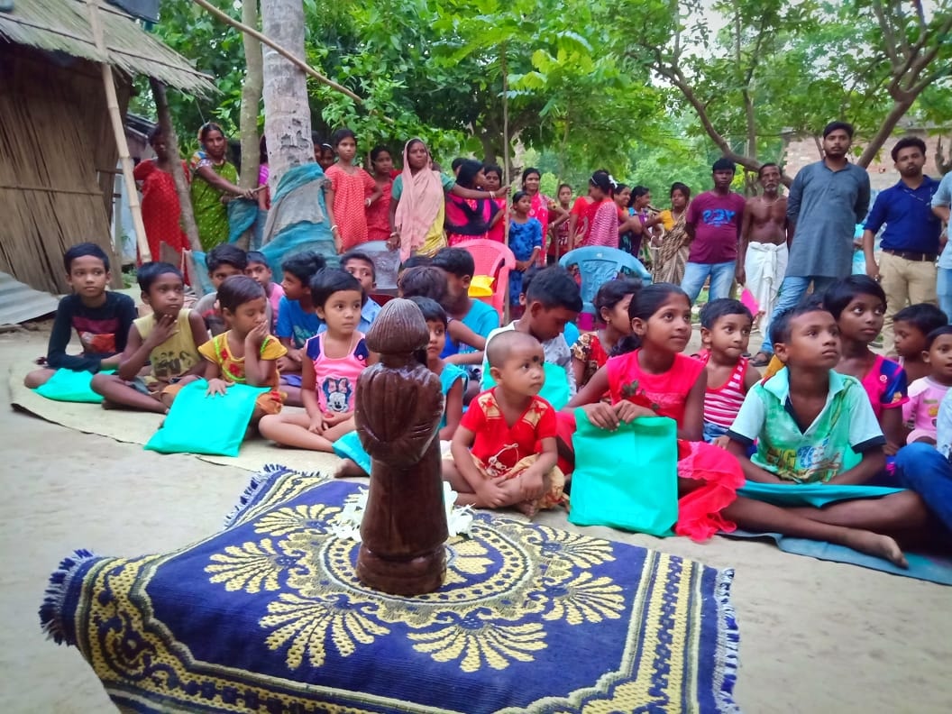 Rabindranath Tagore's childhood was swayed in the minds of many people. In his writings, we get a glimpse of how the birds of the forest used to flutter like caged birds. Later, education in the lap of nature started in Santiniketan. We are also following some ideas from there. On the eve of Rabindra Jayanti, Bhromor shared some time with the children of Chandpur tribal village, at Asannagar. Then children handed over educational materials, health kits and some tiffin (Book Bank and Dry Food Bank) through Nrityahridya's song and dance performances, at Asnnagar. Not only one time, the same material should be handed over to them three times a year so that their drawing does not stop. There are plans in the future to openĀ Ek Takar Pathshala unit there. We need the incompletion of the local youth community to come forward. Nothing is impossible just waiting for the time. We are thankful to Aditi and her team Nrityahridya. Innumerable love to all those kind hearted and beautiful mind people whose gifts have enriched children of Chandpur village.