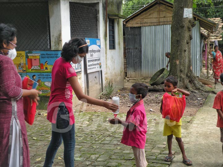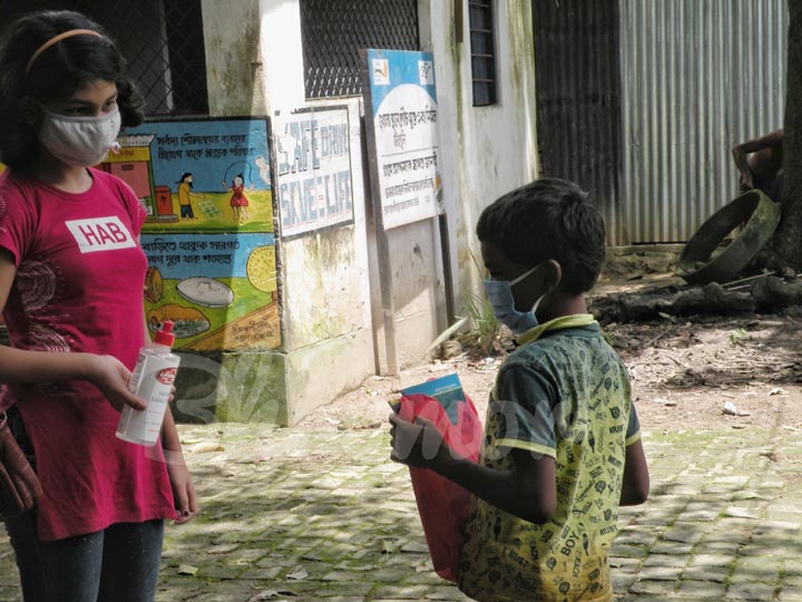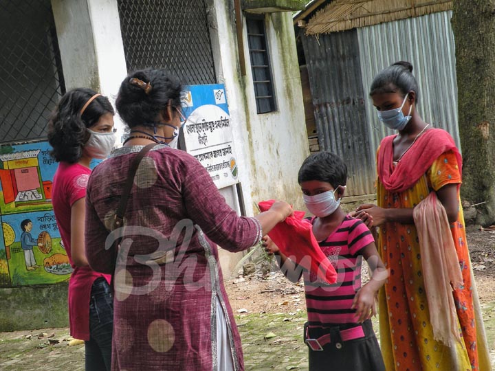 Fill the slate box to the brim. We love to float like butterflies among the colorful flowers, so we go around looking for flowers. Today, Ek Takar Pathsala is closed for several months. They have not been given educational materials for several months.Today it was completed courtesy of Suparna Di and Rana Da. And for the little ones there was chalk and slate. They will giggle.We show that picture after a few days.