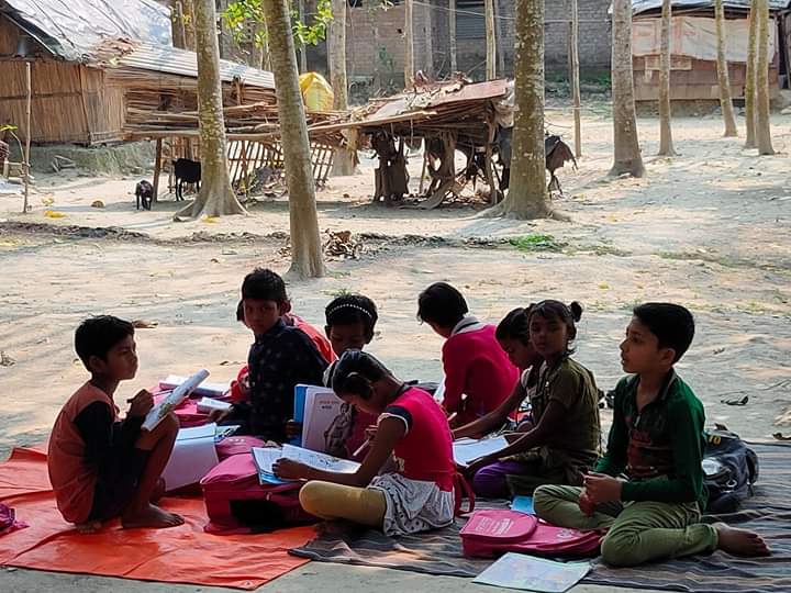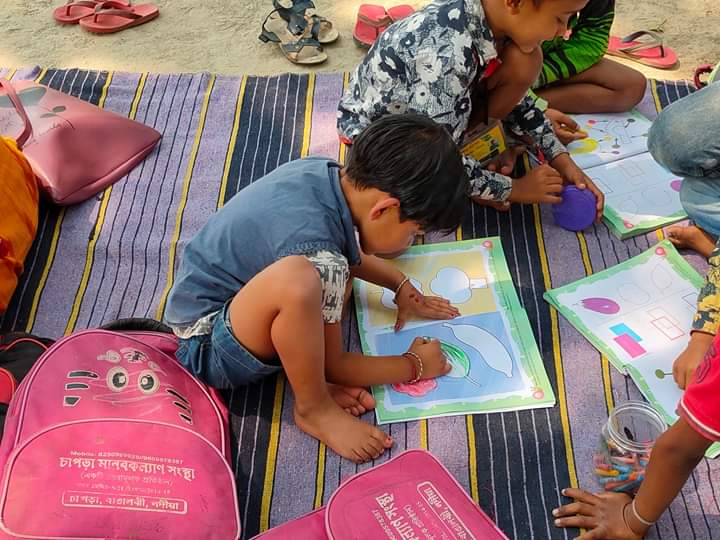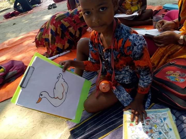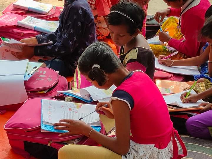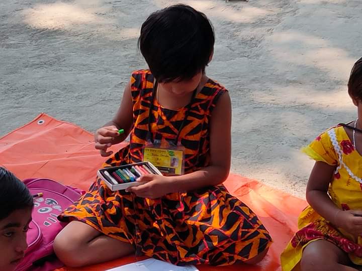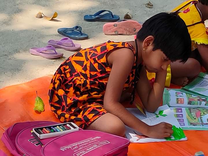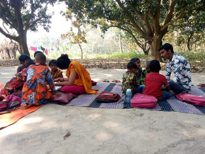 It's a ritual of the village that when a ceremony is held every children gathers there...and it happens...afterall happyness is everything....yet the numbers are not bad on this day.. Many didn't come...it's natural.. because today they celebrate a programme at their home..but the rest have come to the class and fell in love...that is the love that we want..we are giving what is inside us..but it is not enough...so if you have some new teaching skills which you want to spread among them then please come once in a month and spent the whole day with us...and give your knowledge to them along with us..thank you...