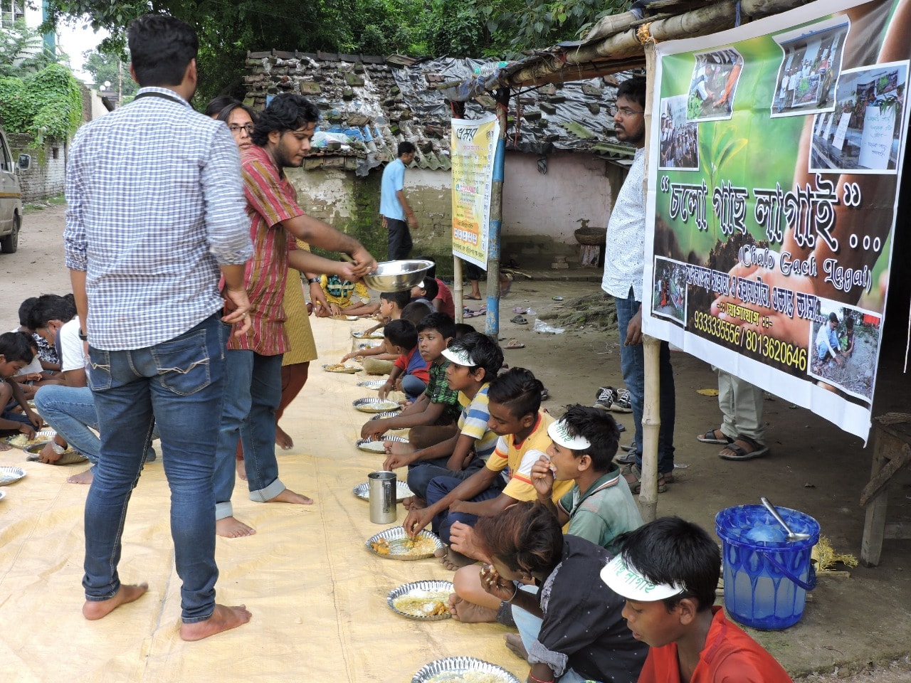On Sunday, September 1, about 100 saplings were planted in Barrackpore town. Some trees are planted by children and some by members. In addition, some cuttings have been planted so that the seedlings can grow in a few months. In addition, about 30 more trees were planted along the banks of the river to control the erosion of the river. Because the people of Barrackpore know that a large part of the river Ganges is being eroded in this part of U-24 Parganas. They also have a morning tiffin and lunch. Rice, pulses,chips, meat and sweets. This program has been completed with the initiative of Cholo Gach Lagay and Bhromor. And next to us stands the Barrackpore Retreat Club (which is part of the Rotary Club).