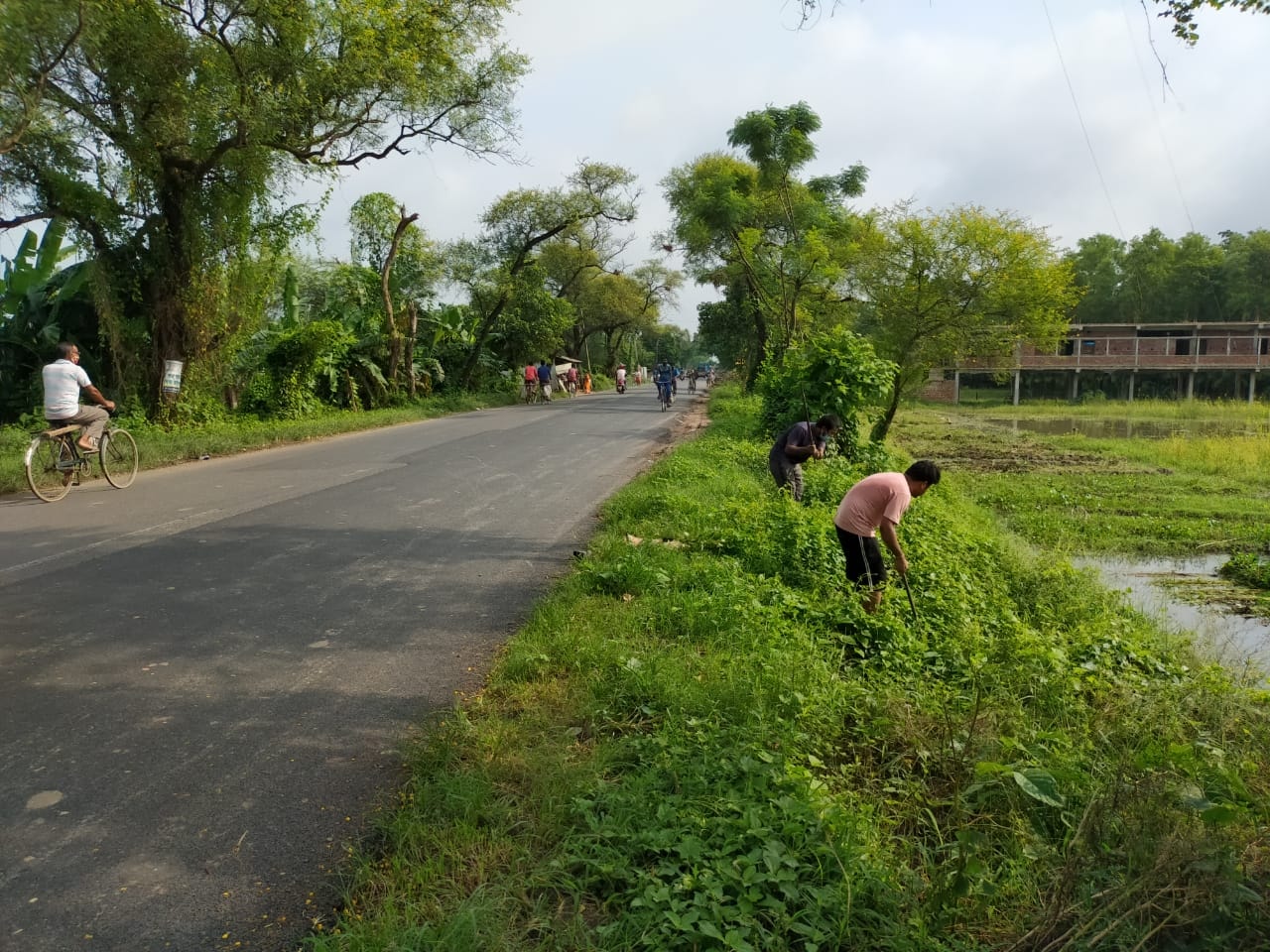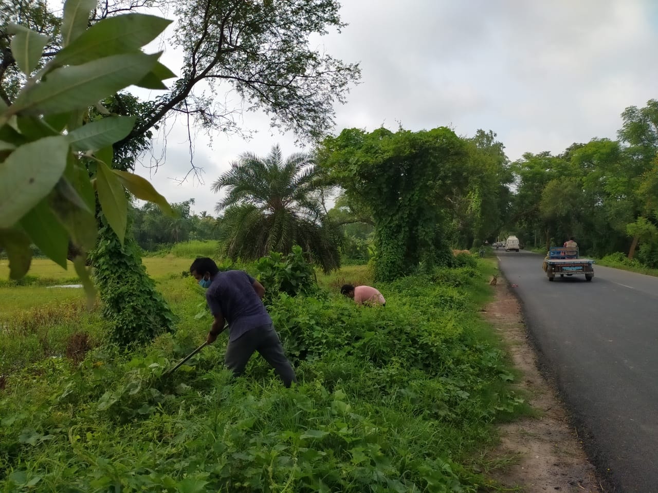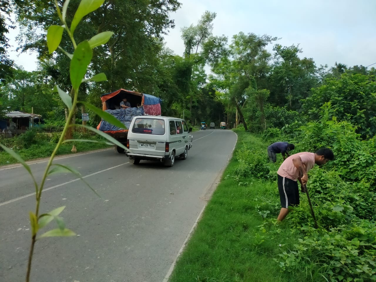 Arjuna trees are being planted along the national highway from Khamarshimulia to Krishnanagar.