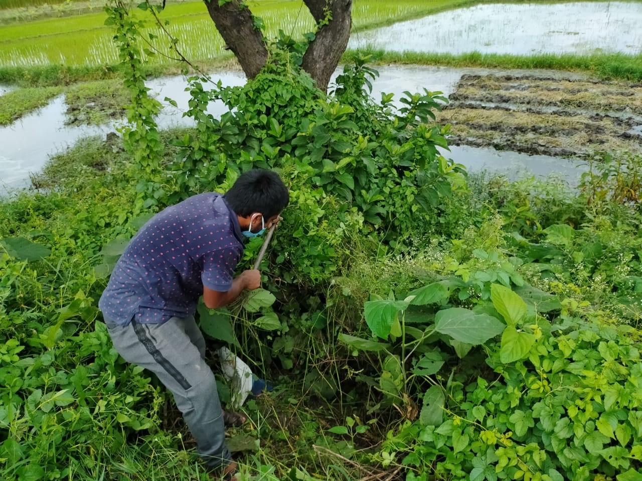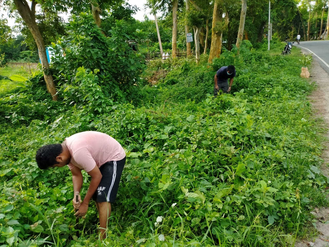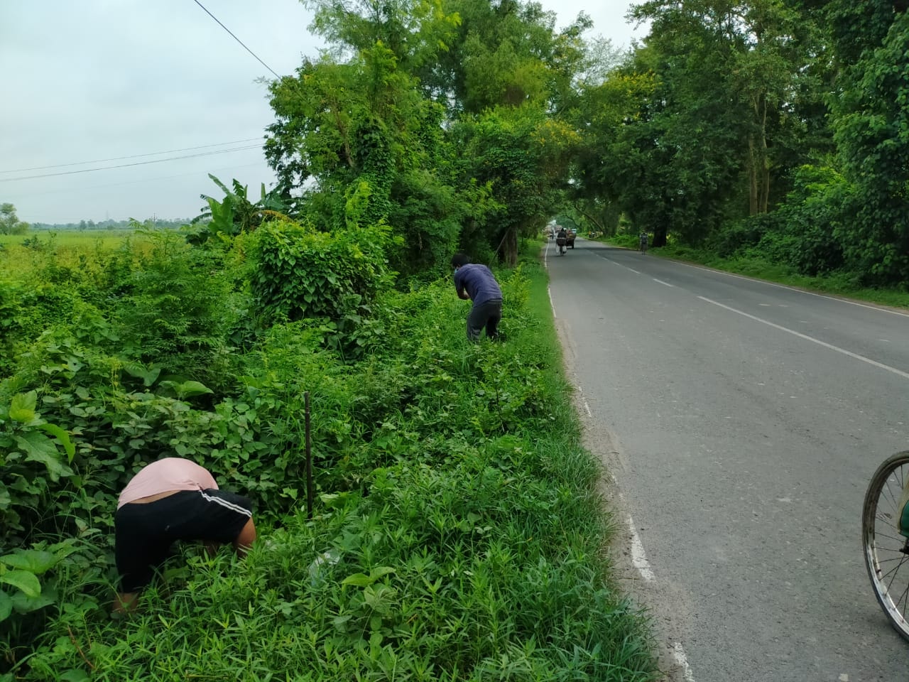 Arjuna trees are being planted along the national highway from Khamarshimulia to Krishnanagar.