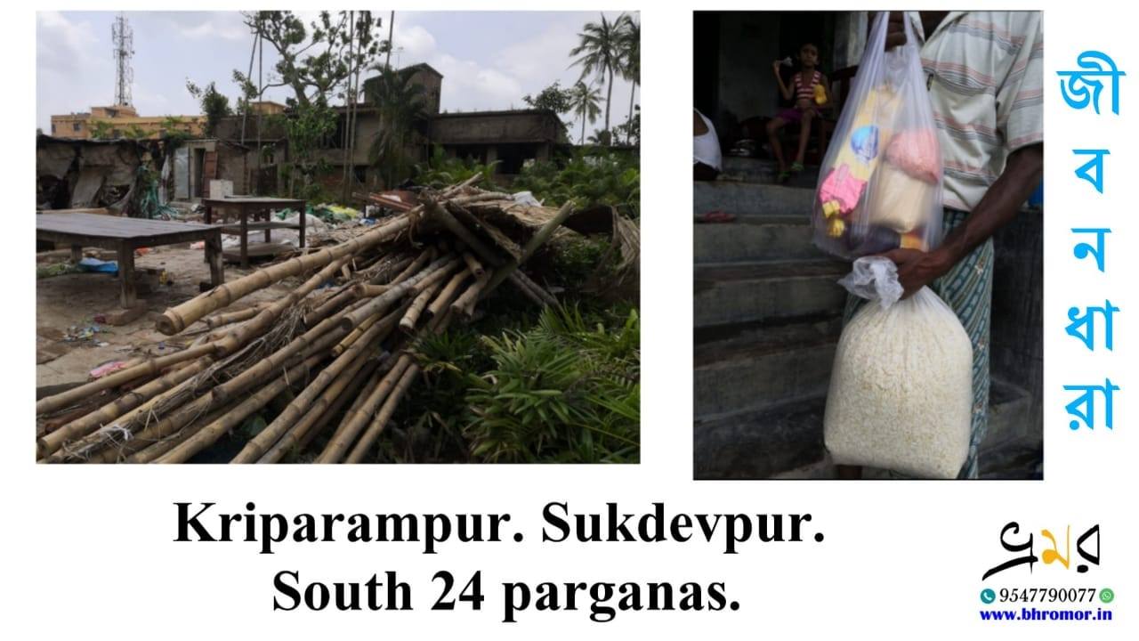 We saw several bamboos lying there, and two beds. There was a house here.There was a family of three.There is no time to understand. The man who ate from day to day was quite well organized. Some money was needed to repiar the house and some food. Accordingly, 1000 / - rupees and oil, rice, pulses were handed over to them. Muri, chire and biscuits. There is a need for many more things.Achieve as much as possible.
