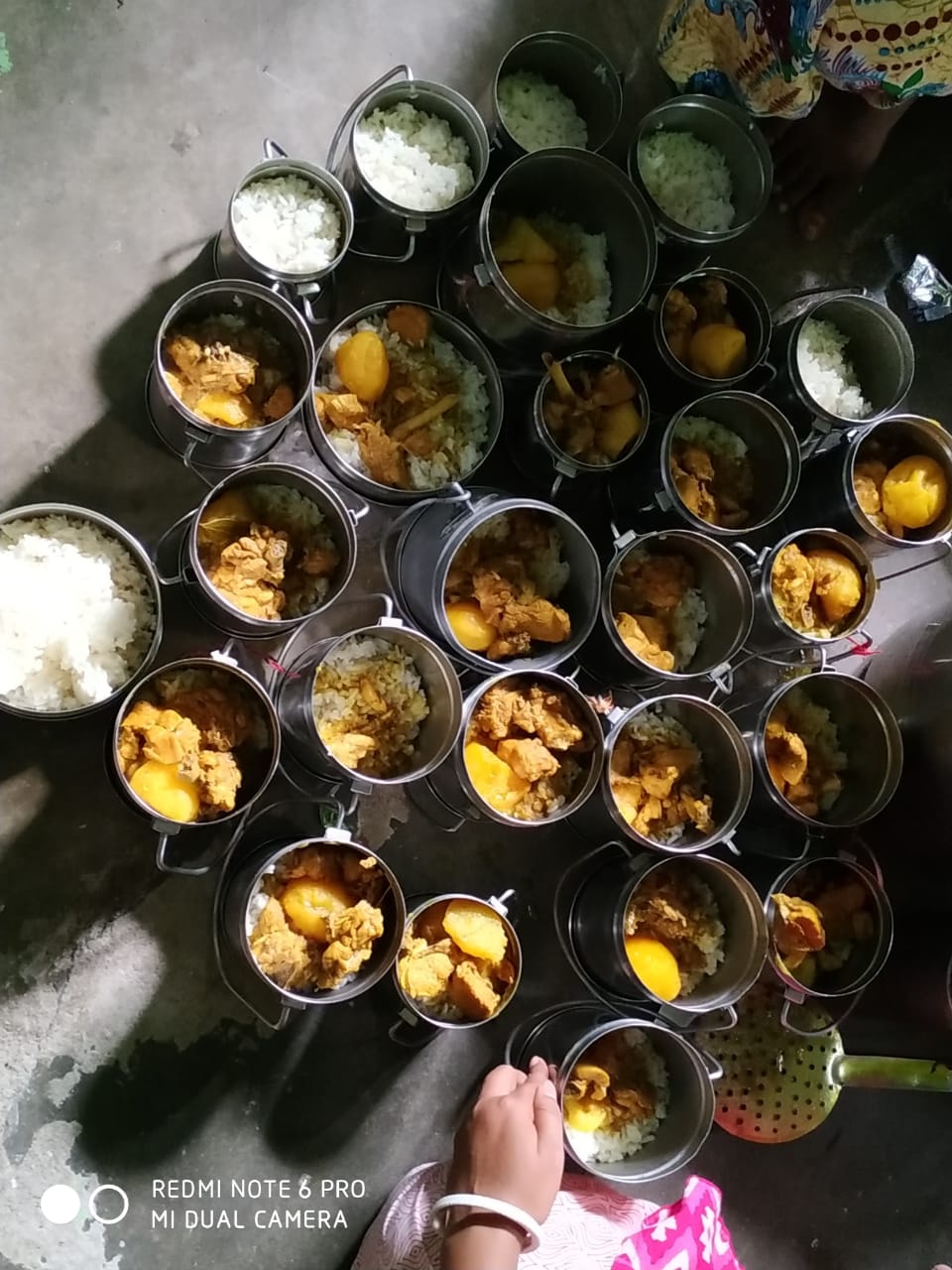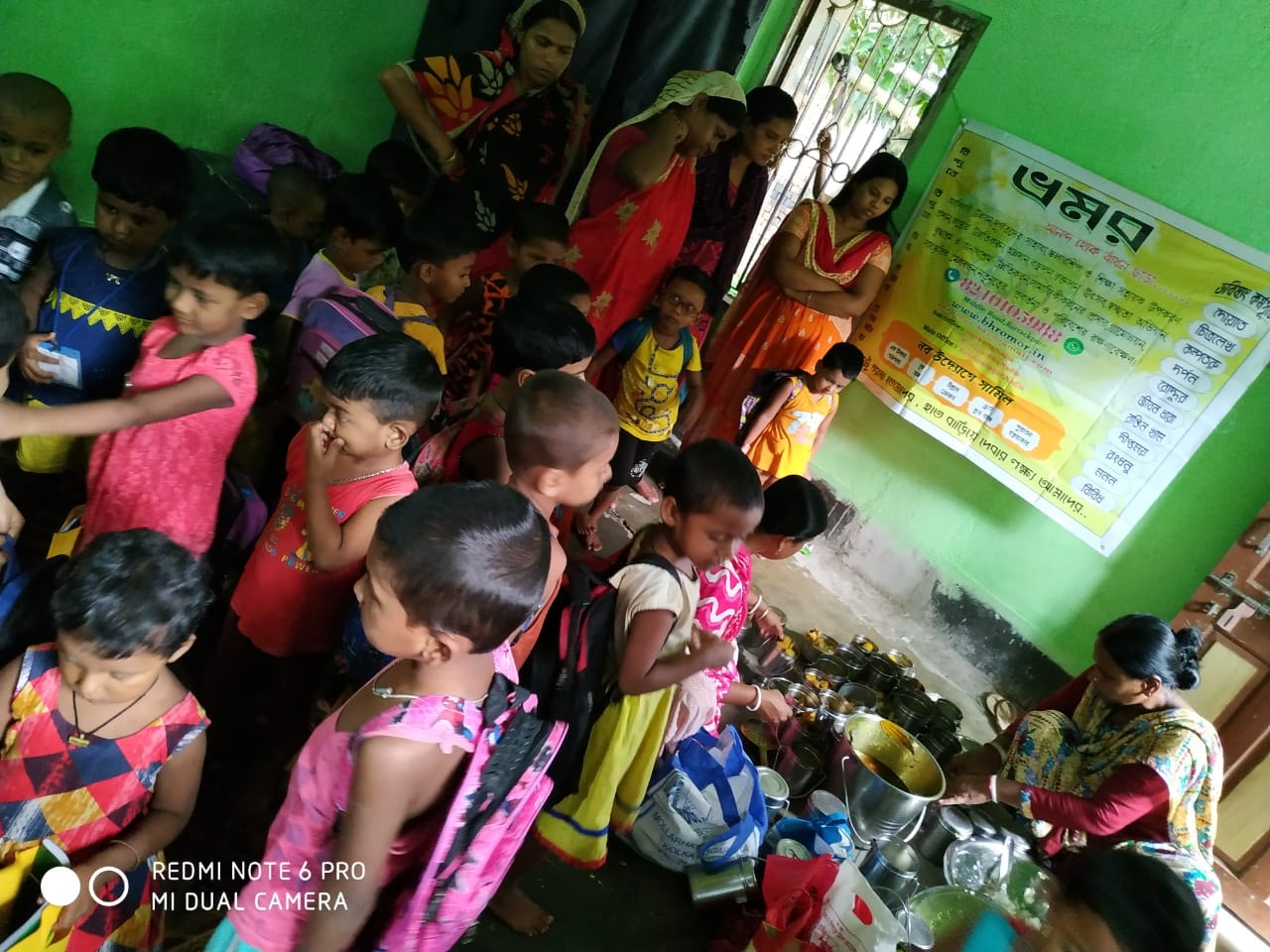 Educational materials were handed over to the childrens of Ghidah village under Birla Gate in Barrackpur. Cake and Cadbury for tiffin. The menu for the afternoon was rice and meat. We wish Subhankar and Rishita a lot of love and happy birthday. Many thanks to 'ekata sangha' for giving us the opportunity to stand by them in this way.