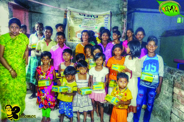It is very sweet to see the faces when it is said do you eat nadu nimki sweet moya ? In one sentence, they said, "I'll eat e e e e." And as soon as I opened the box, I saw naru,nimki, sweet, moya,khai, murki. They are very happy to see the various types of food. We are also very happy to witness the carrying of the ancient trend. I will not lie, we have also checked a little.