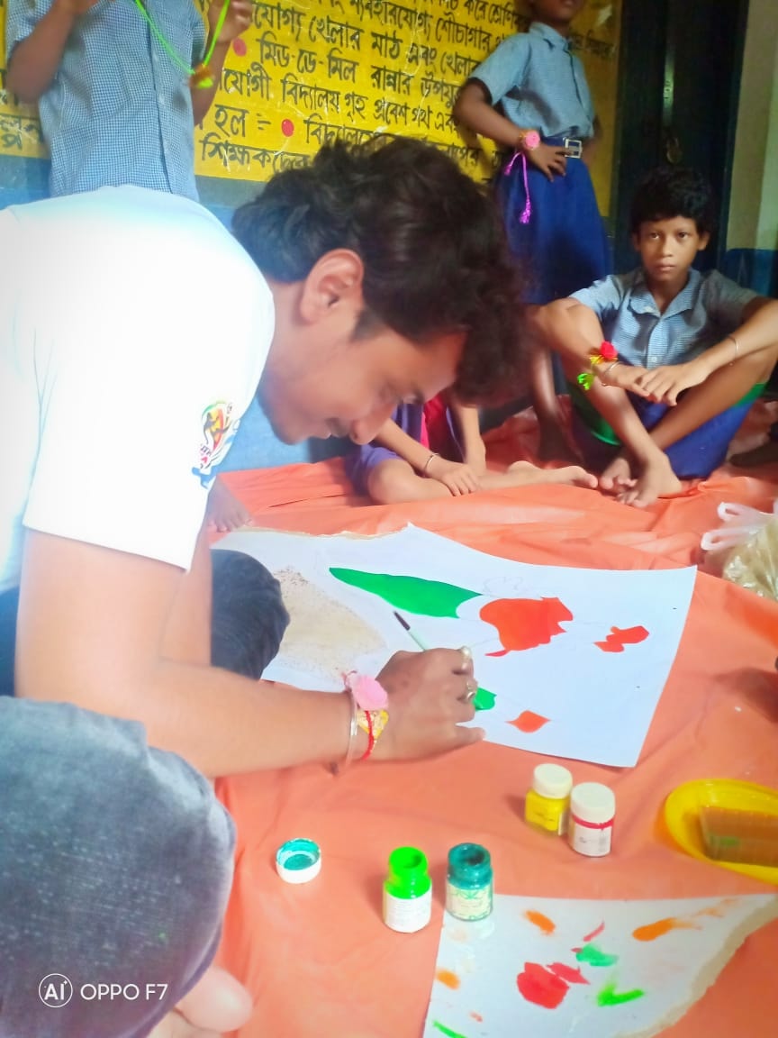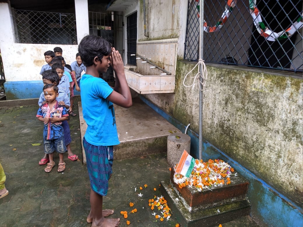 Rakhi Bandhan and Independence Day. This is a fun day for us. In the village Ek Takar Pathshala we always treat the childrens in a friendly manner. We make our Pathshala like a playground.So on this day we wanted to make our life of our false and have a childhood.In the morning Independence Day celebrations then cakes and lozenges are distributed. Together goes parade. Then the football game starts with them. After 11 years, we started playing and burning incense. What a beautiful game they played. When we were little we also loved to play with the masters. That opportunity would come once a year. Nowadays, the Kachikachas do not have that either.The whole time the field began to tremble with their enthusiasm and voice. What is lost in it. I got the sweet hulls again. I got back with my childhood left behind. I am waiting for this opportunity again.At the end of the day, everyone bathed in the river and arranged rice, pulses, meat chips and sweets at noon. We are happy again.